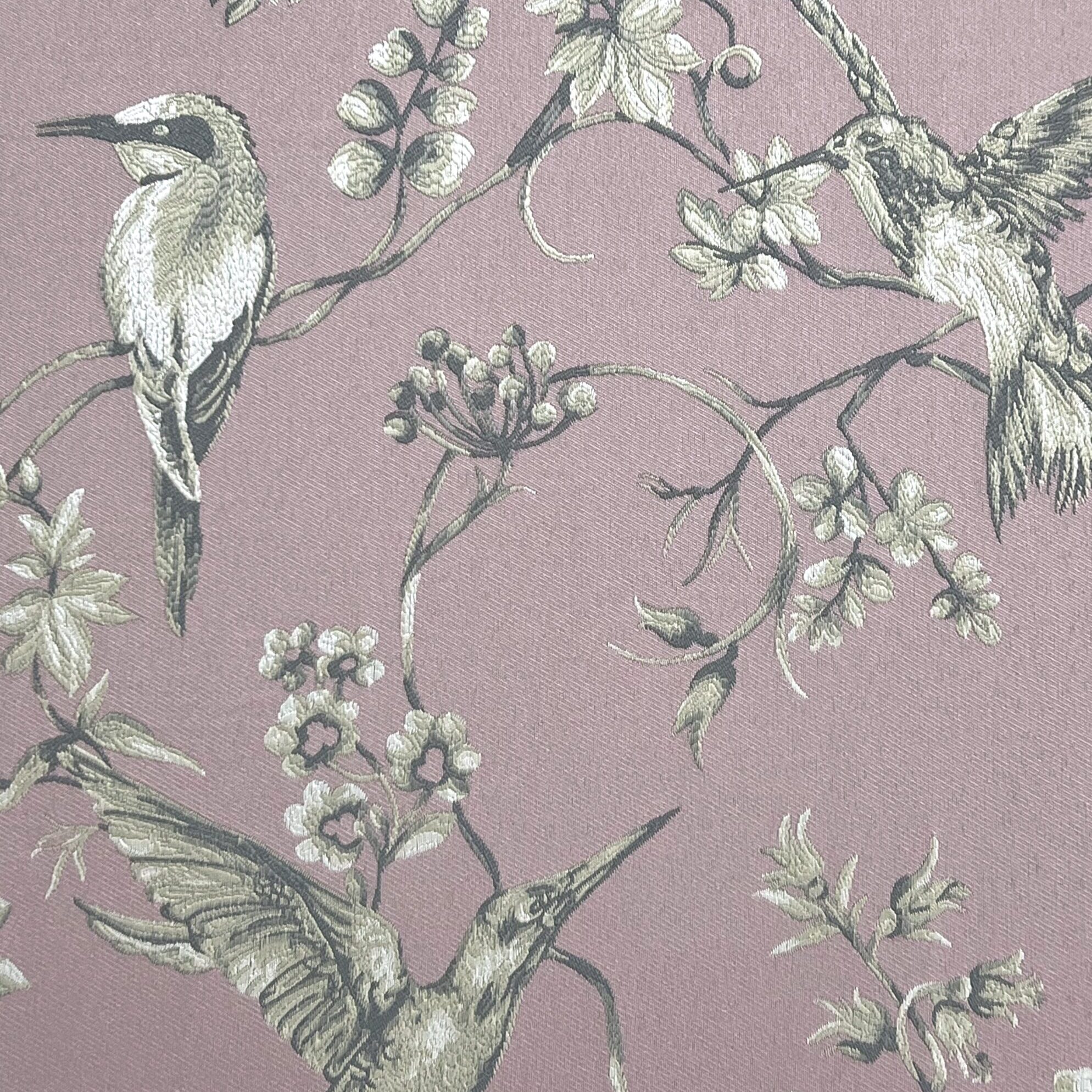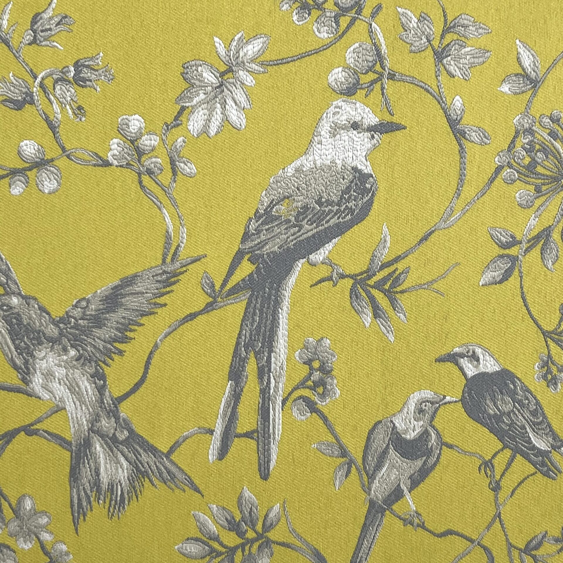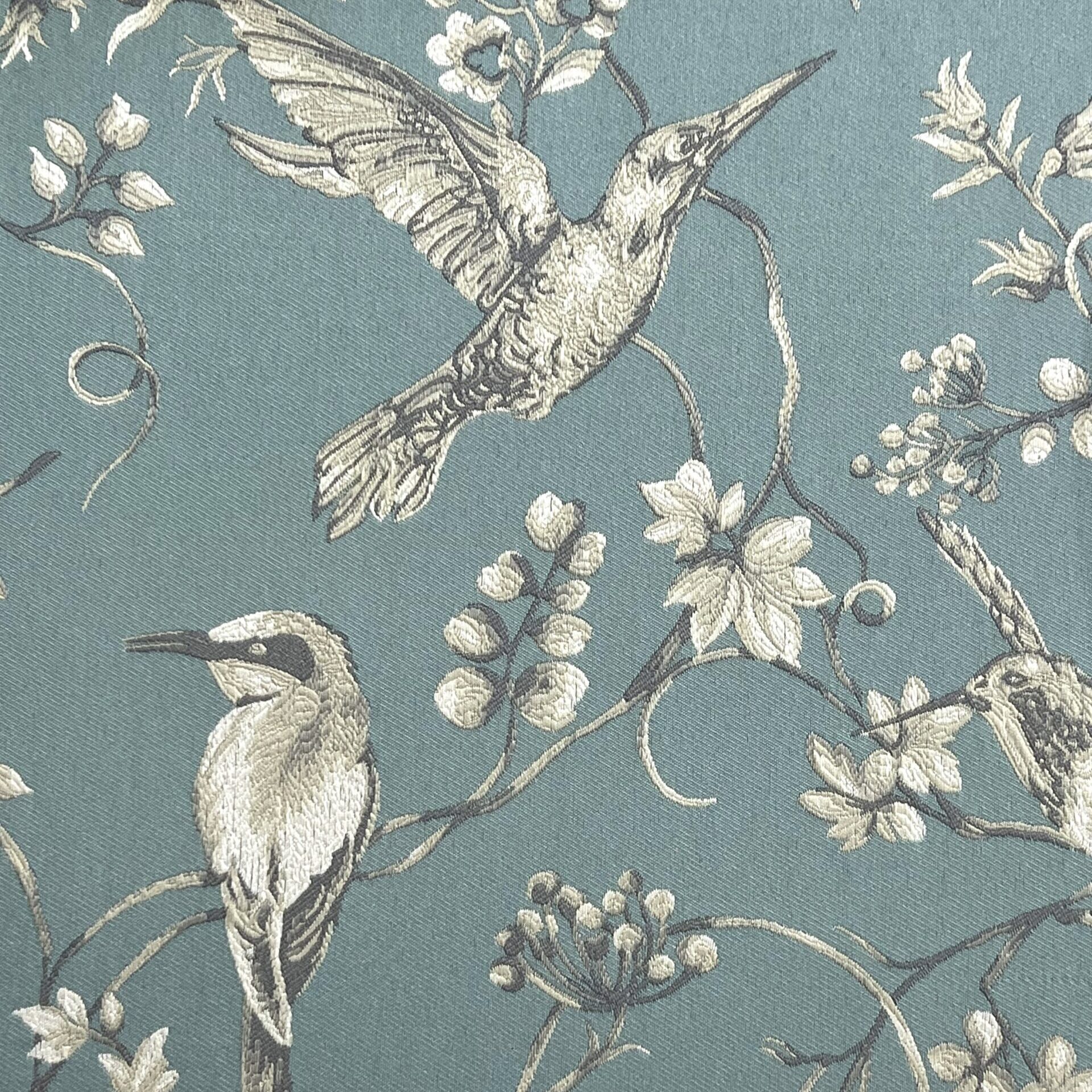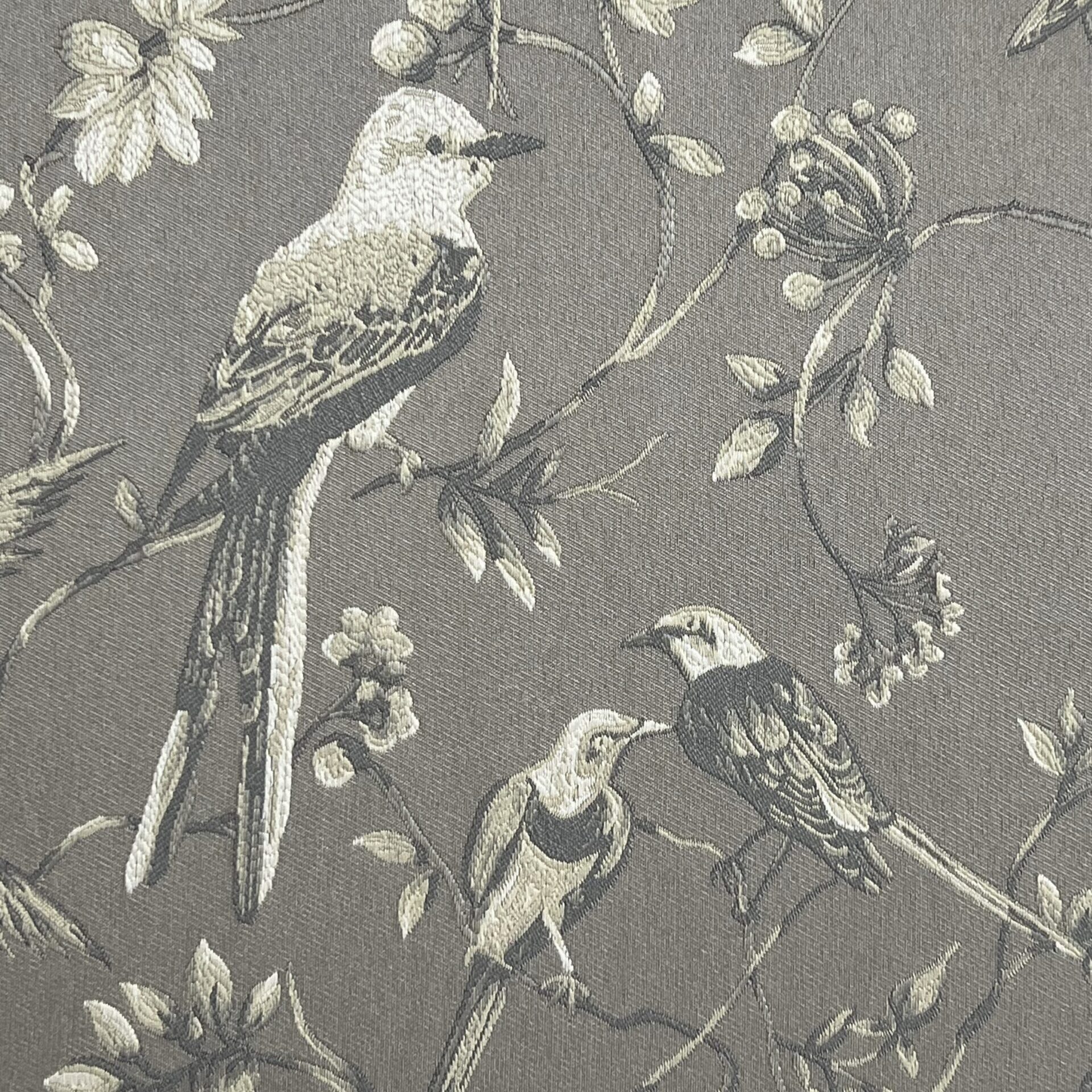 Tecido jacquard com pássaros bordados